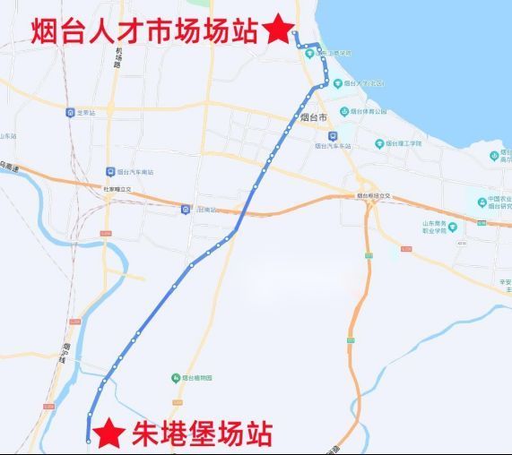 站点设置:朱塂堡、陈村、圣泰佳苑(解村)、友谊村南站、友谊村、官庄南站、官庄、明泉村、昊宇驾校、日日顺电器(鑫荟金行)、烟大路、烟台大学、烟台人才市场站点。