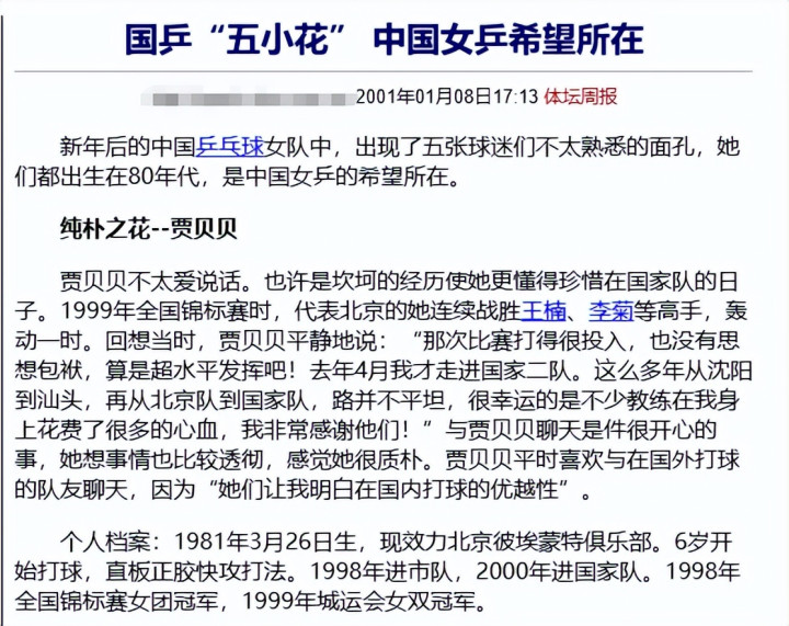 被官媒称为国乒“五小花”之一,一度被视作女队的未来之星。