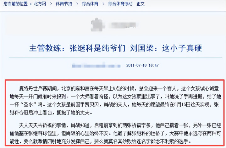 北方网:主管教练:张继科是纯爷们 刘国梁:这小子真硬