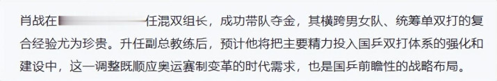 而升任国乒副总教练的肖战,更新周期的关键一步棋。