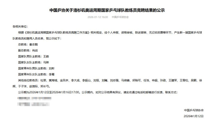 由中国乒乓球协会公布了竞聘的结果。