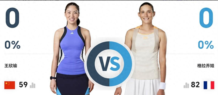 作为金花独苗,中国金花“二姐”王欣瑜迎来首秀,对手是从资格赛突围而出的法国球员格拉乔娃,世界排名第82位。