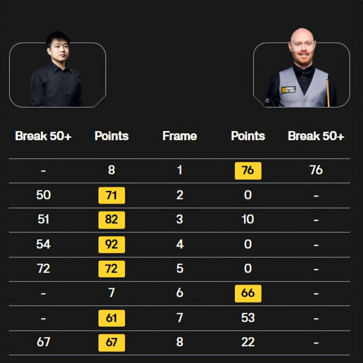关键的第六局和第七局,吴宜泽没有给对手任何连续反扑的机会,分别打出单杆65分和稳健的制胜,以67-50再胜,从而以总比分6-2的悬殊优势,将卫冕冠军肖恩·墨菲淘汰出局。这场胜利,不仅仅是吴宜泽个人生涯的重大突破——首次参赛即晋级八强,更是一次标志性的“爆冷”。